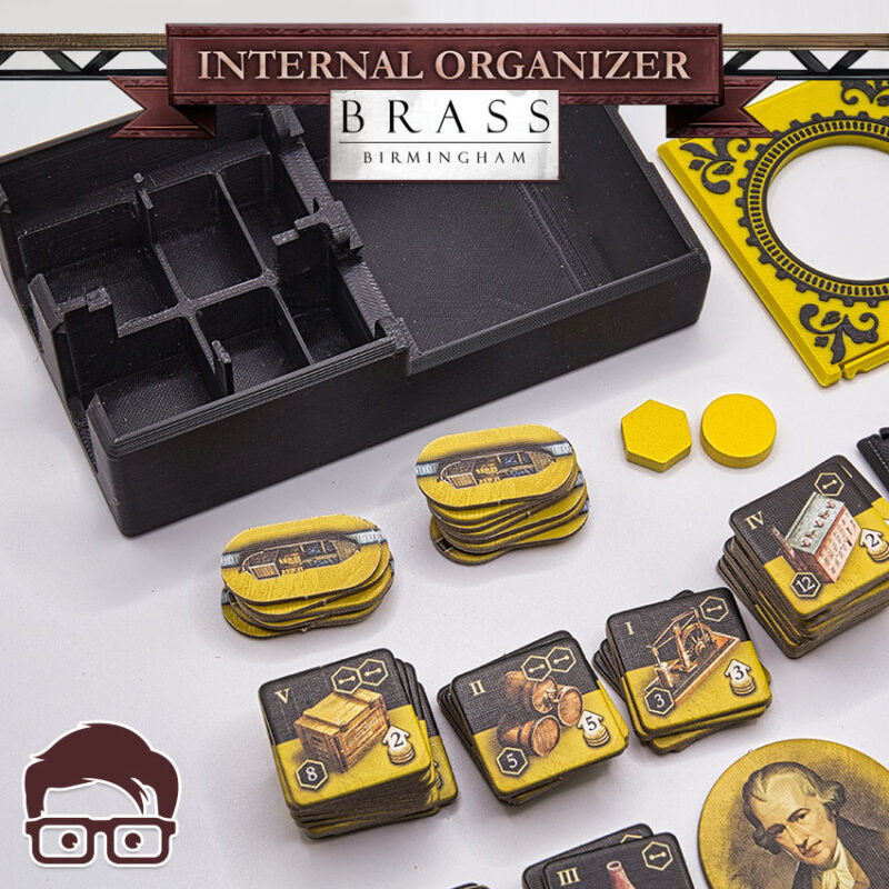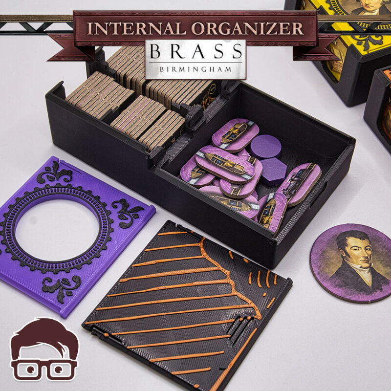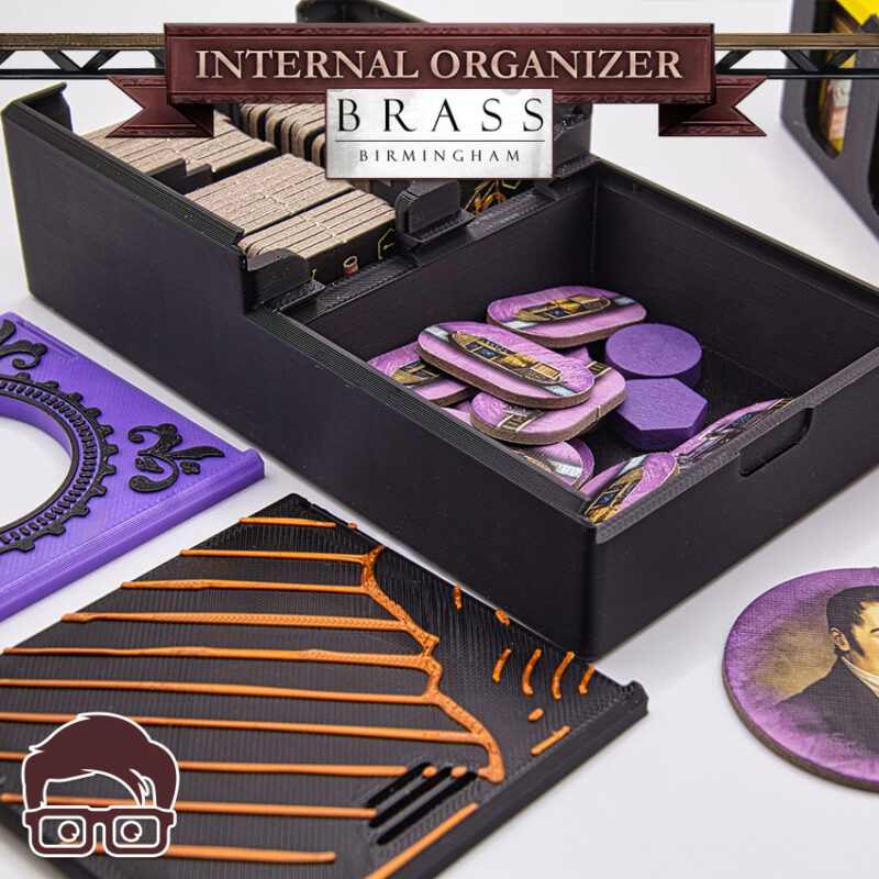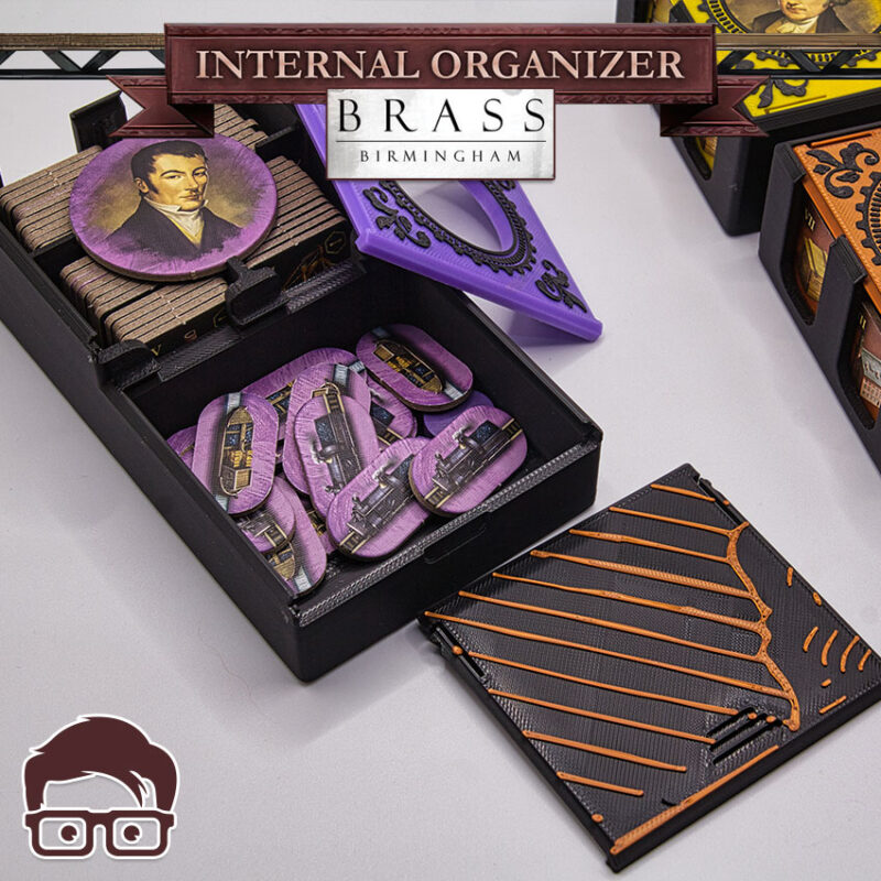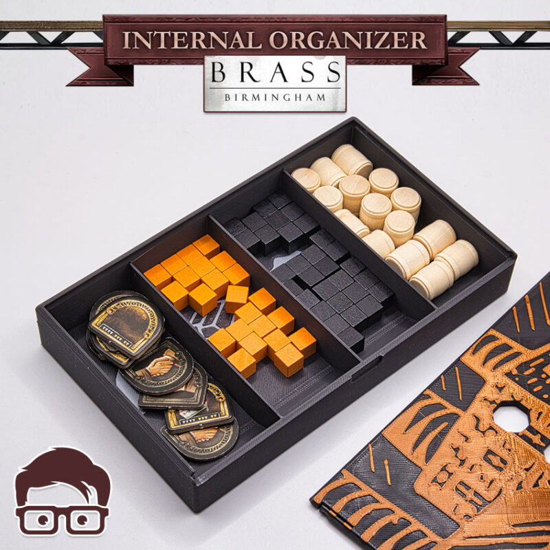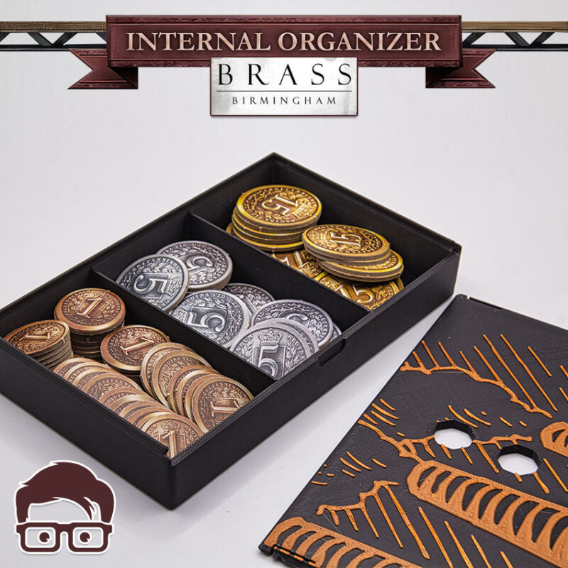 This is a 3D printable inserts for the board game BRASS BIRMINGHAM, designed to organise ALL the components of the game inside the original box. Thanks to the interlocking lids, you can place the box horizontally or vertically without worries, as nothing will be able to fall out of the box. Inserts also support sleeved cards