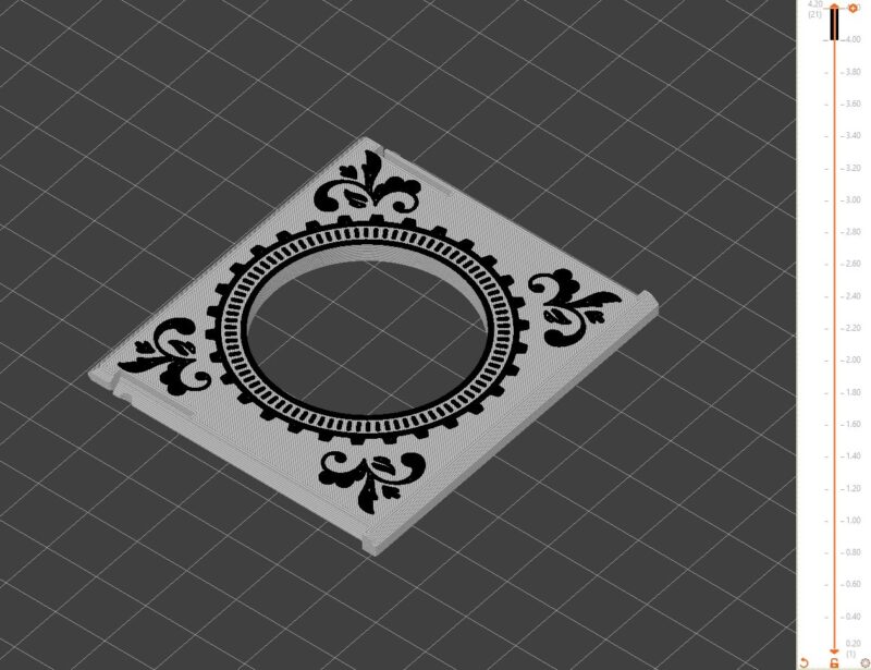You can also printing the lids in different colors, in fact, along with the normal files you will also find versions with very nice graphics that fit the game’s graphic style; you can print in different colors with a normal 3D printer. Each colour is set to a different height to allow for filament changes USING M600 G-CODE OR PAUSE COMMAND. I personally recommend PrusaSlicer, which makes it damn easy to set colour change pauses, but of course you can do this with any other slicer. I’ve written an article on this topic: https://www.am-media.biz/mastering-multicolor-3d-printing-with-prusaslicer-a-comprehensive-guide-420/ – in the photos you can see a preview of the slicer, on the right you can see the color changes and their respective heights.